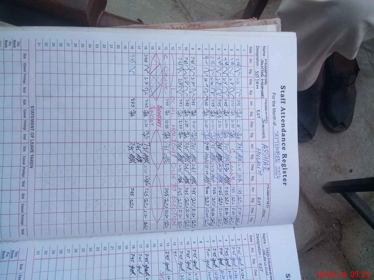 | Monitoring Date: 18-09-2024 | Start Time: 18-09-2024 08:38 AM | End Time: 18-09-2024 09:32 AM | Name of MEA: Mu**** Sa**** Ul**** Sa**** | |