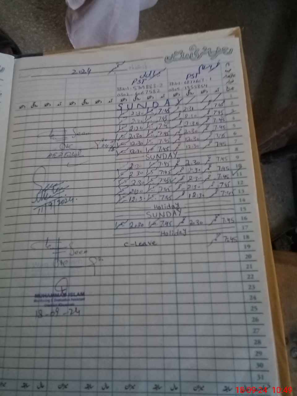 | CNIC | Full Name | Designation | R/C | Absence During Last Calender Month |
