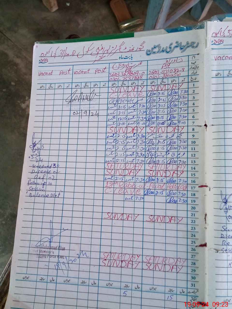 | Name: Sa**** Ra**** Designation: (School Headmaster's/Headmistress's) PST Phone/Cell Number: 03**** |