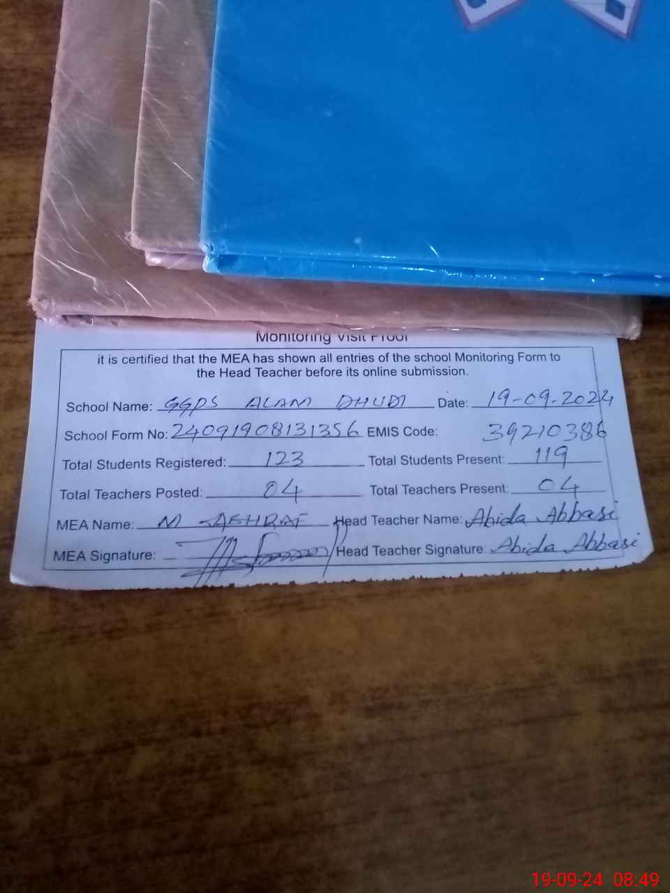 | EMIS Code: 39210386 | Name of School: GGPS ALAM DUHDI | |||