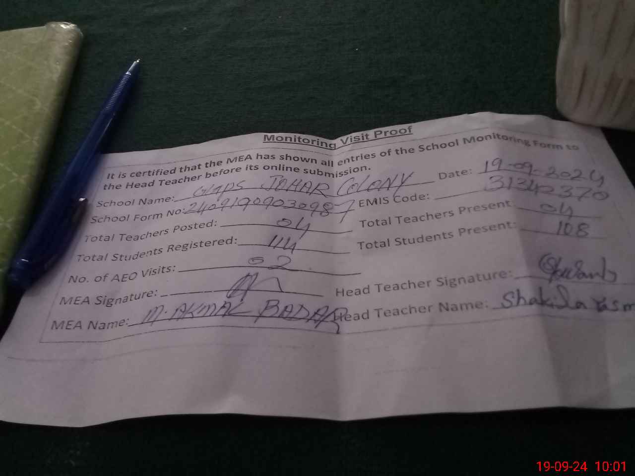 | Certified that this School was Inspected by the Undersigned MEA/DMO Today and the Information Stated Above is as Per Record. | |||||