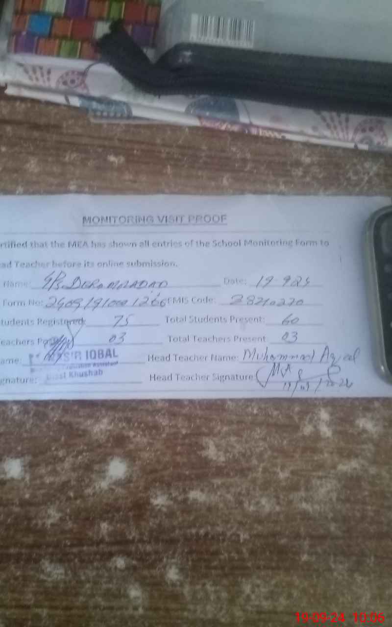 | EMIS Code: 38210270 | Name of School: GPS DERA MOLADAD | |||