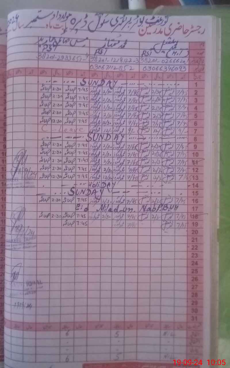 | Name: Mu**** Aq**** Designation: (School Headmaster's/Headmistress's) PST Phone/Cell Number: 03**** |