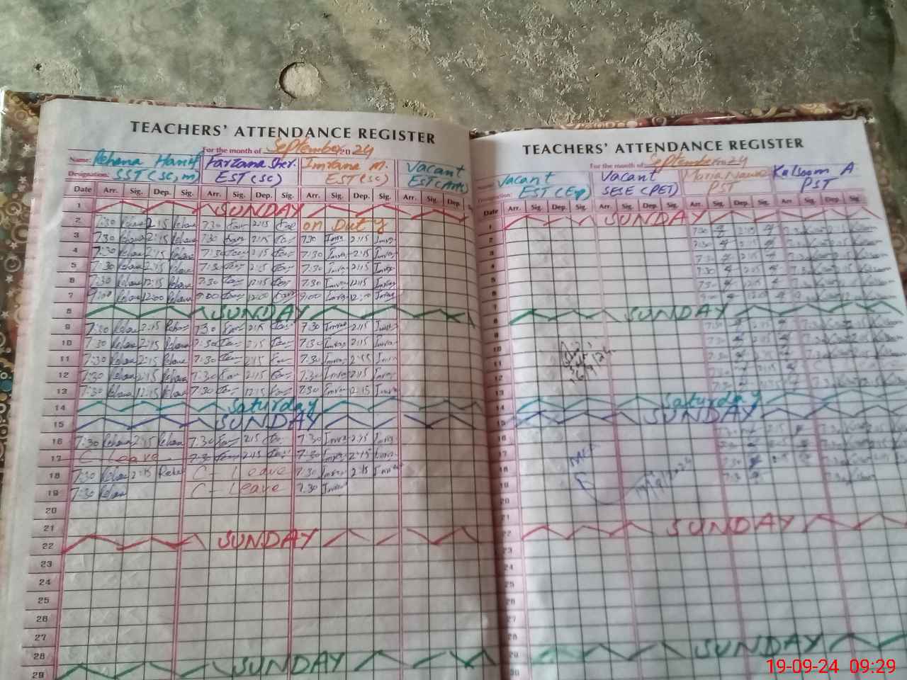 | Leave | Duty | Absent | Maternity | Medical | Ex- Pak |