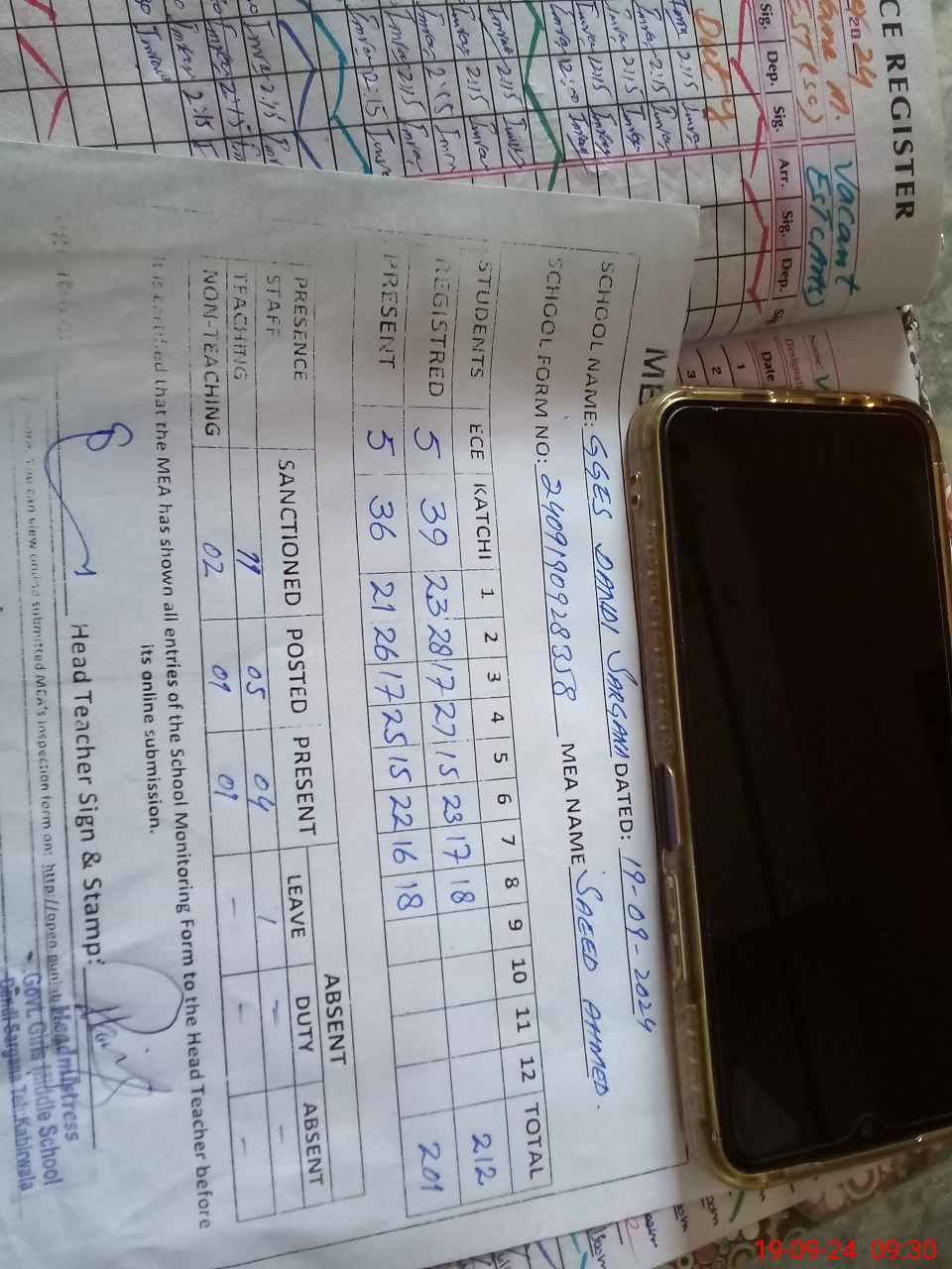 | Attendance Register | Head Teacher | MEA with School | Visit Proof |
