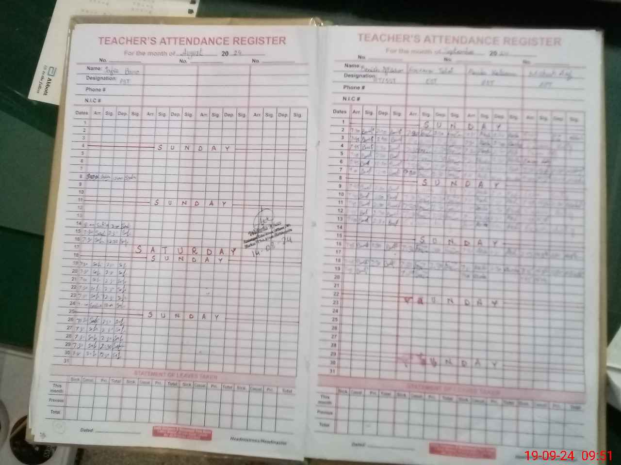 | CNIC | Full Name | Designation | R/C | Absence During Last Calender Month |
