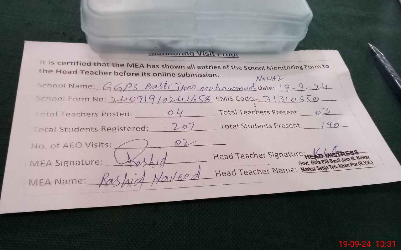 | EMIS Code: 31310550 | Name of School: GGPS BASTI JAM MUHAMMAD NAWAZ | |||