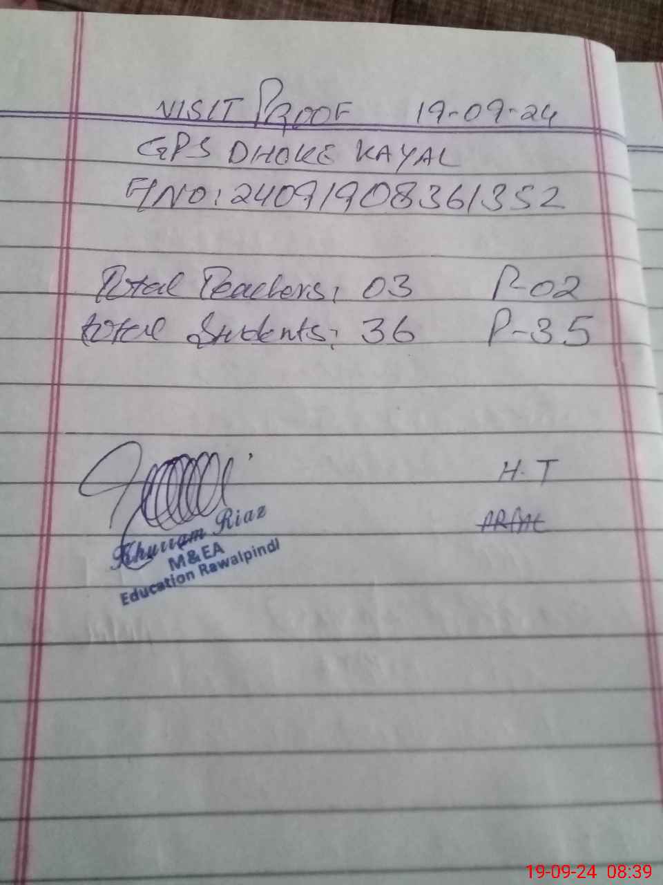 | EMIS Code: 37360634 | Name of School: GPS DHOK KAYAL | |||