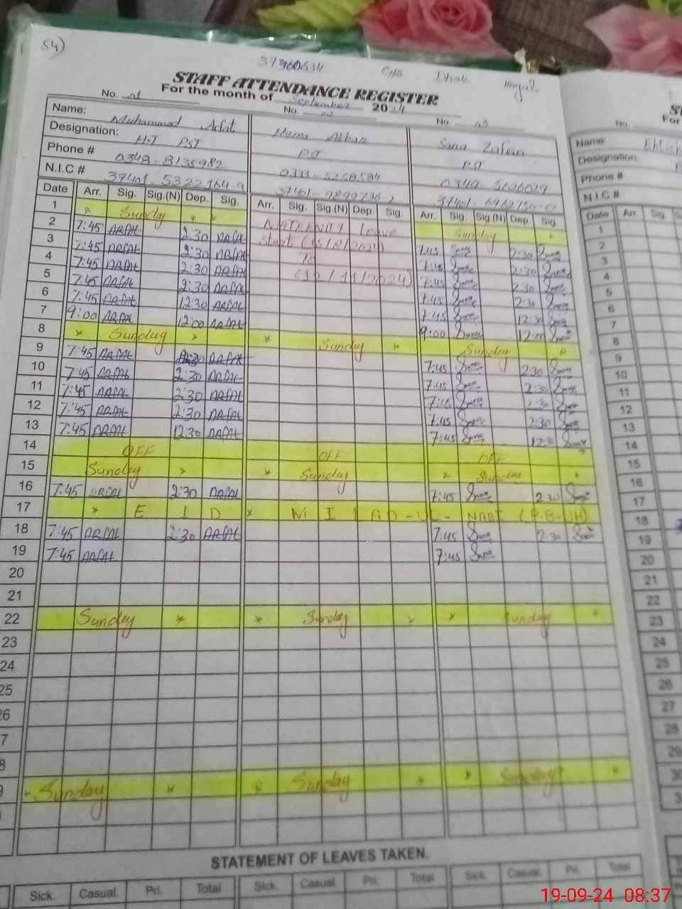 | 37**** | Hu**** Ak**** | PST | Regular | 0 | 0 | 0 | 0 | 0 | 0 | 0 | 0 | 0 | Maternity |