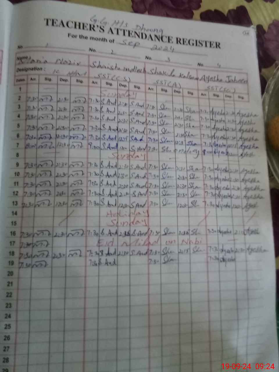 | Monitoring Date: 19-09-2024 | Start Time: 19-09-2024 08:56 AM | End Time: 19-09-2024 09:40 AM | Name of MEA: Kh**** Ri**** | |