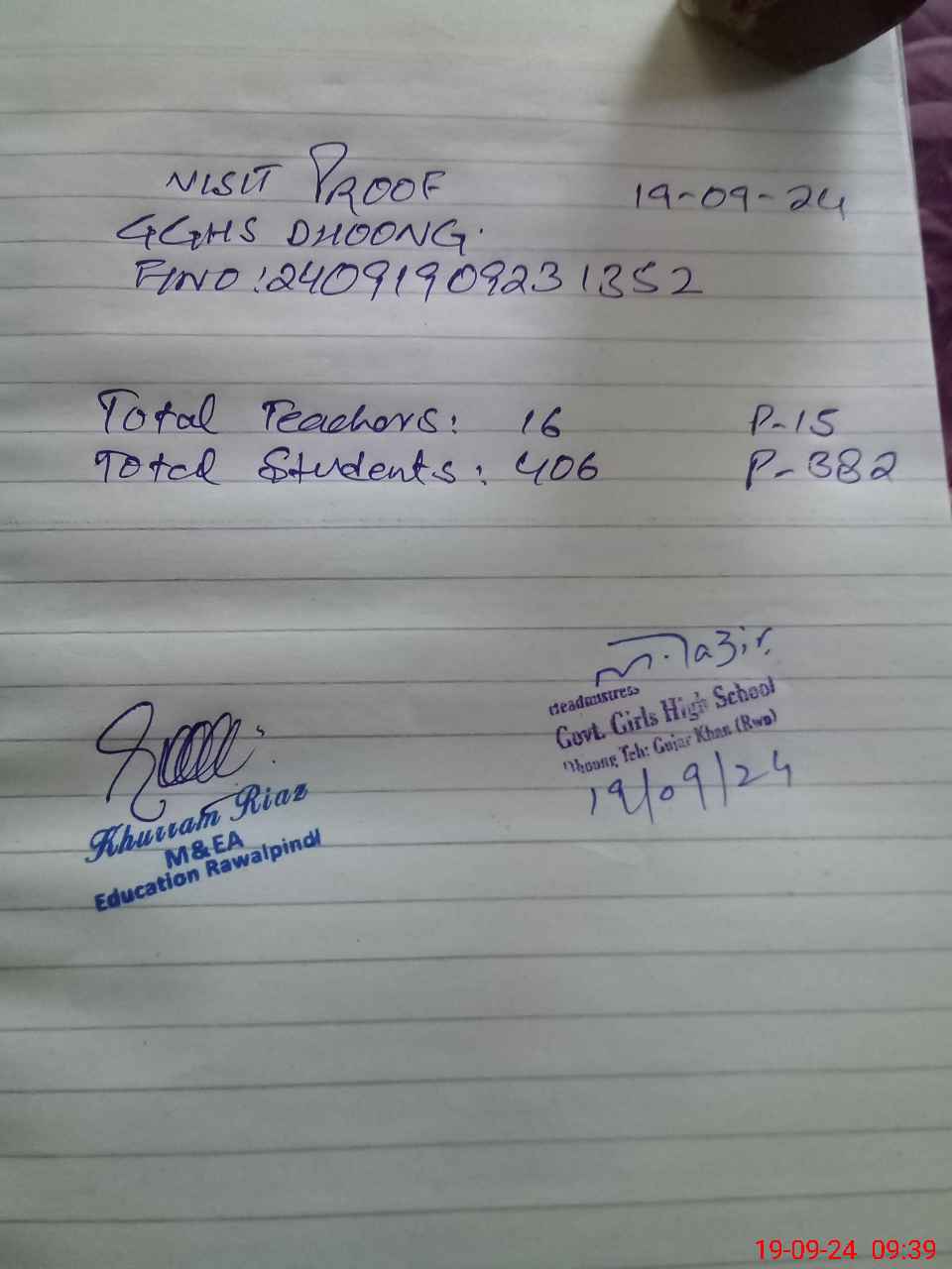 | Name: Ma**** Na**** Designation: (School Headmaster's/Headmistress's) SST Phone/Cell Number: 03**** |