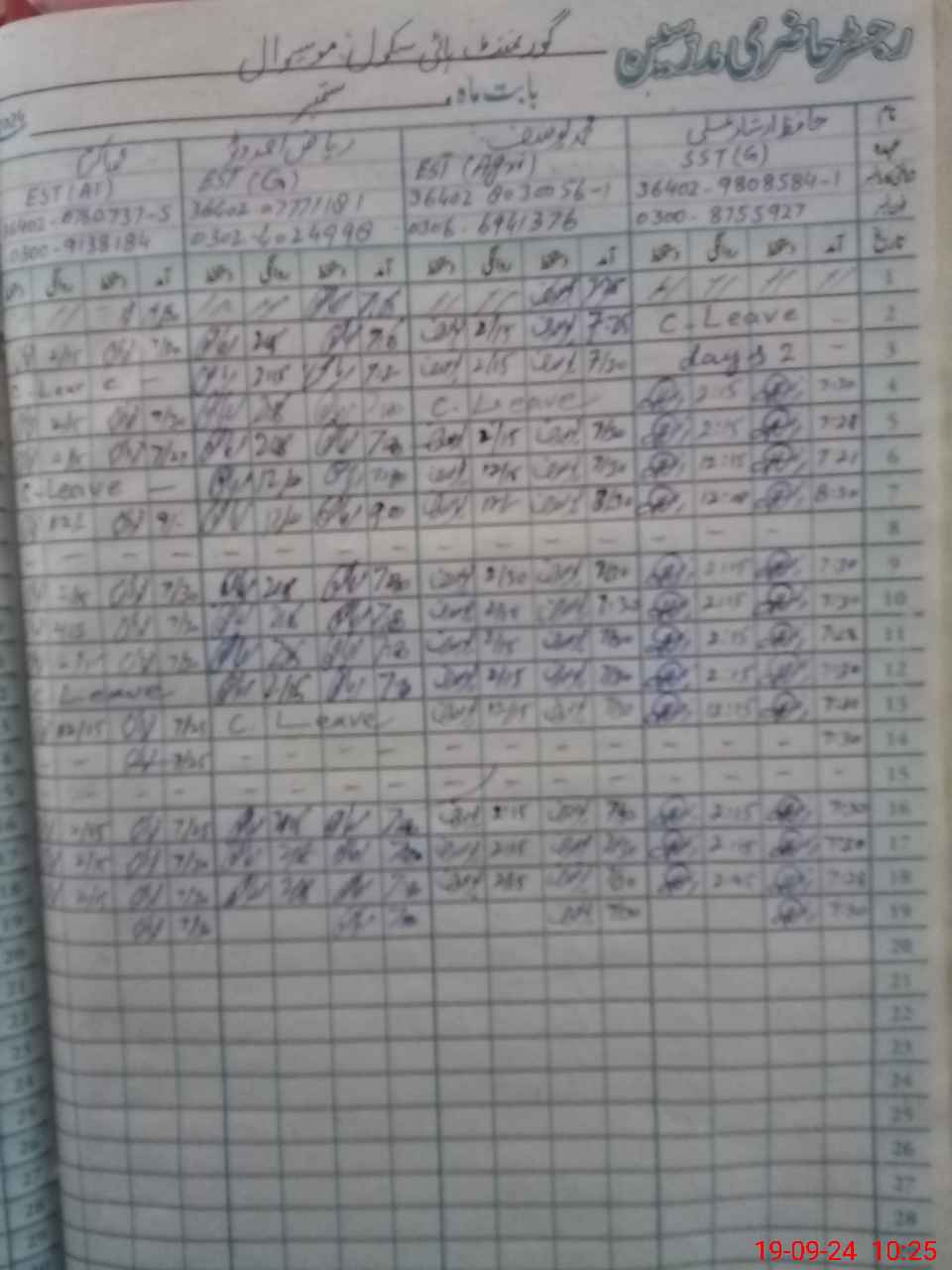 | Name: Ha**** Ir**** Al**** Designation: (School Headmaster's/Headmistress's) SST Gernal Phone/Cell Number: 03**** |