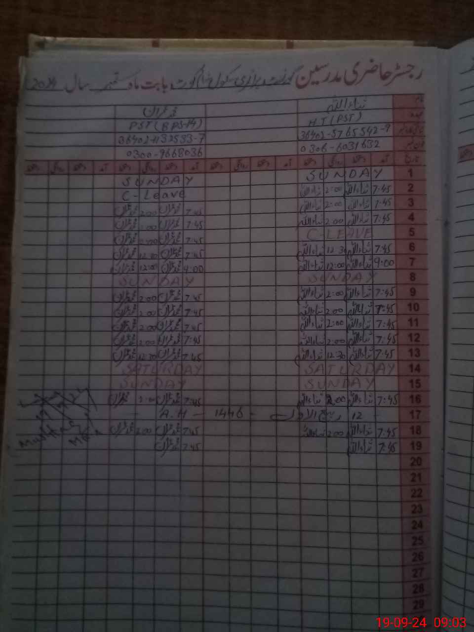 | CNIC | Full Name | Designation | R/C | Absence During Last Calender Month |