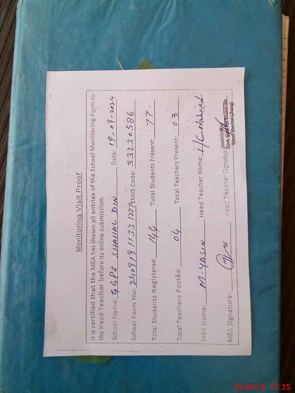 | EMIS Code: 33230586 | Name of School: GGPS SHAHAL DIN | |||