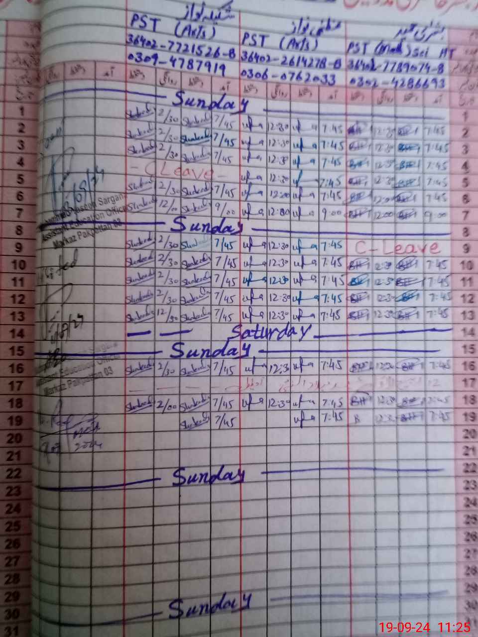 | Name: Uz**** Na**** Designation: (School Headmaster's/Headmistress's) PST Phone/Cell Number: 03**** |