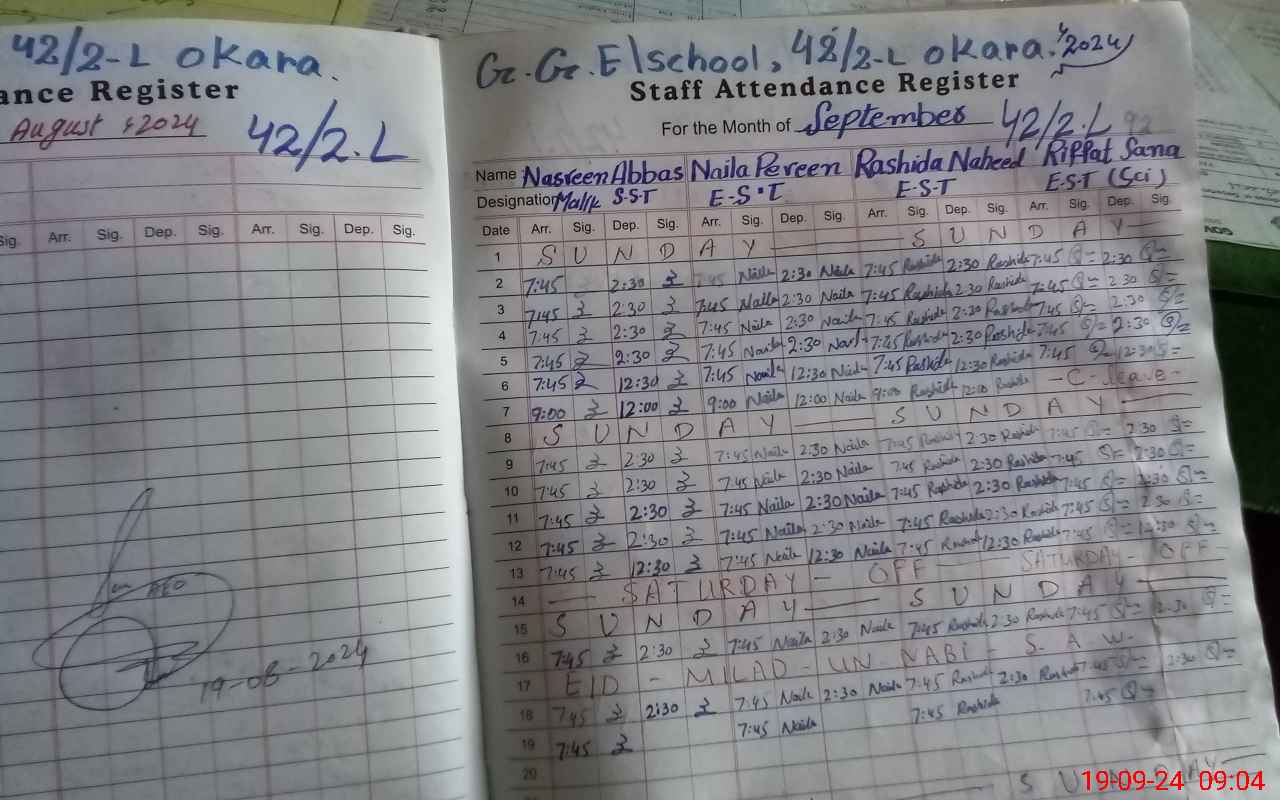 | District: OKARA | Tehsil: OKARA | Markaz: 4/4.L-FEMALE | Level: Middle | |