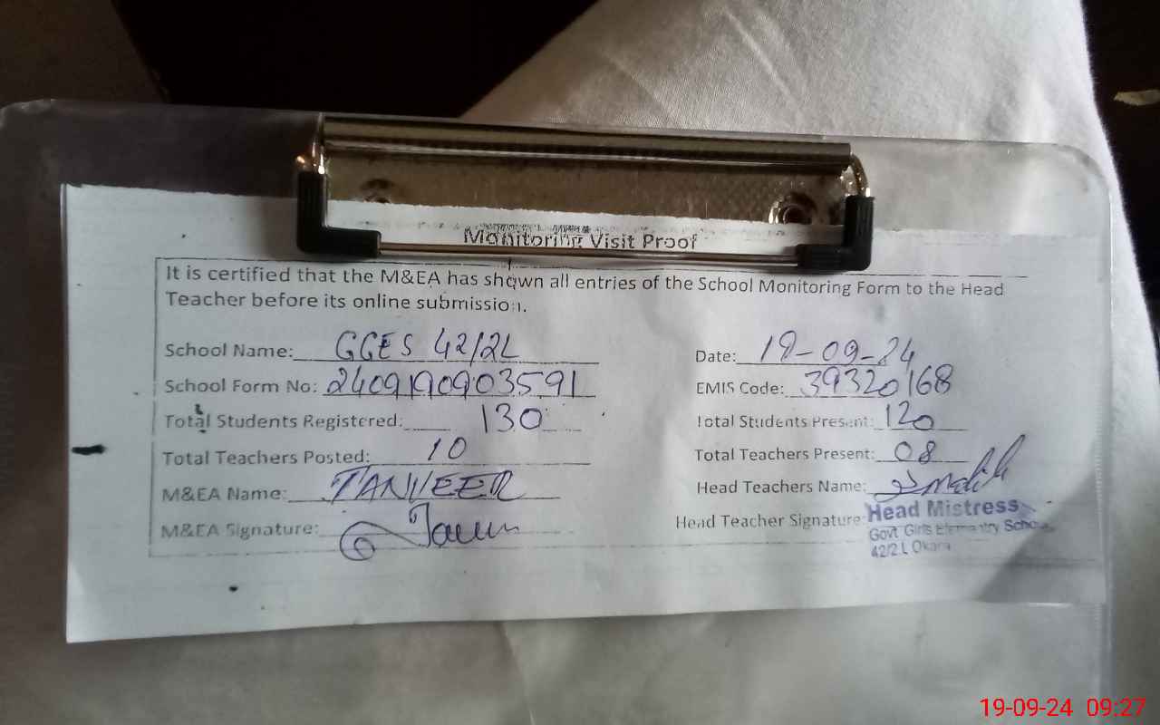 | EMIS Code: 39320168 | Name of School: GGES CHAK NO. 42/2-L | |||