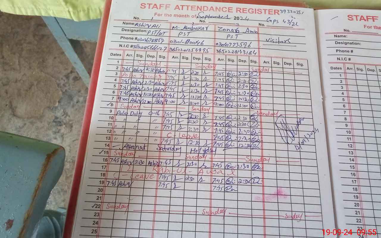 | Name: As**** Al**** Designation: (School Headmaster's/Headmistress's) PST Phone/Cell Number: 03**** |