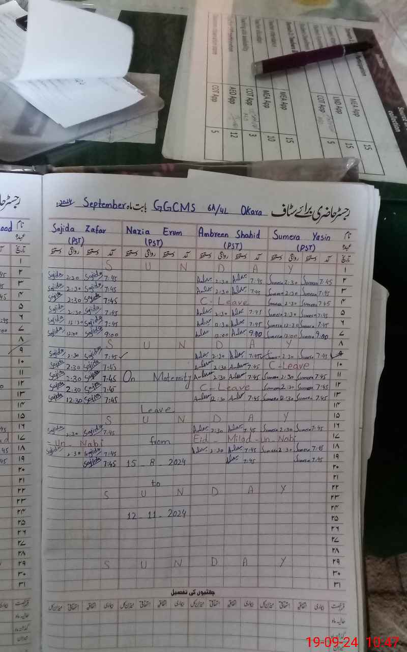 | District: OKARA | Tehsil: OKARA | Markaz: 4/4.L-FEMALE | Level: Primary | |