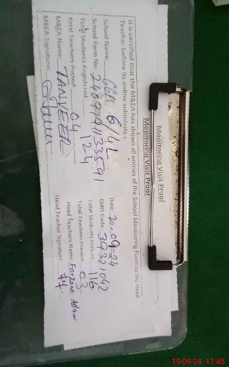 | Attendance Register | Head Teacher | MEA with School | Visit Proof |