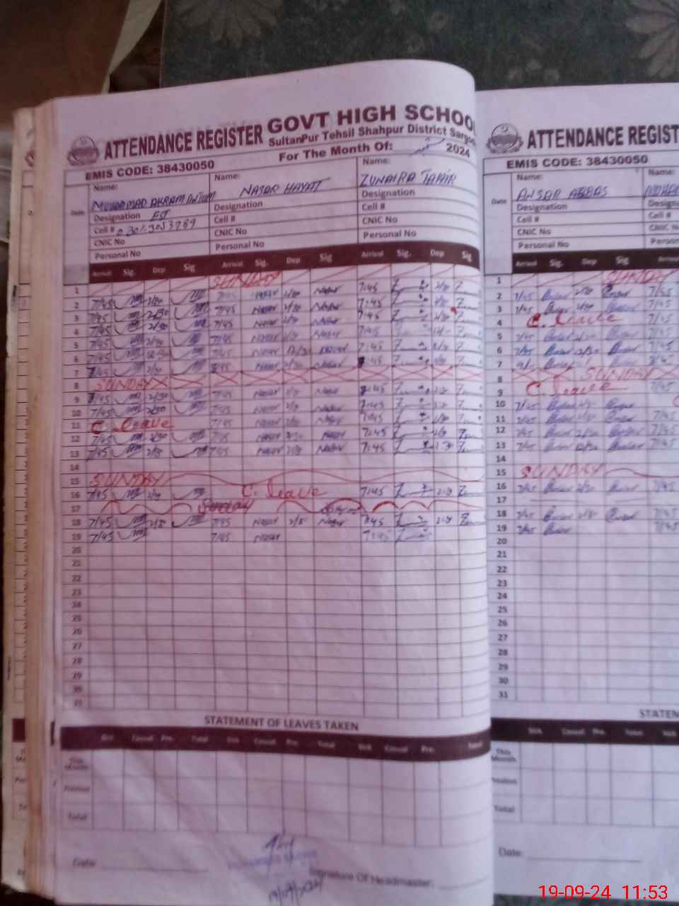 | EMIS Code: 38430050 | Name of School: GHS SULTAN PUR | |||