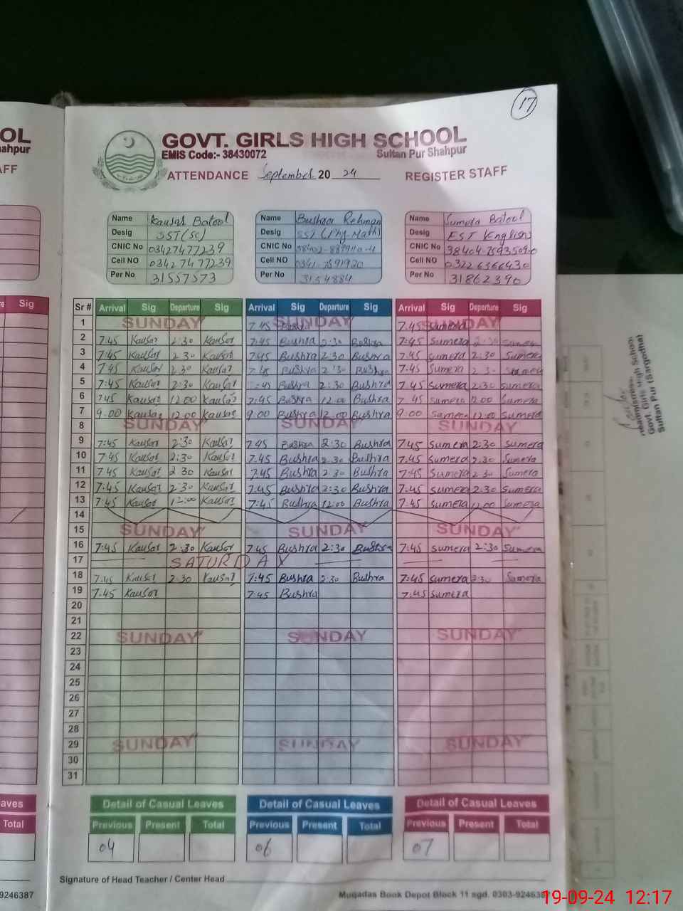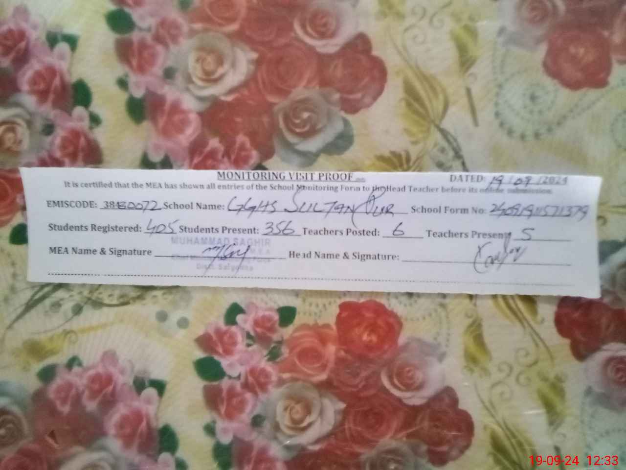 | EMIS Code: 38430072 | Name of School: GGHS SULTAN PUR | |||
