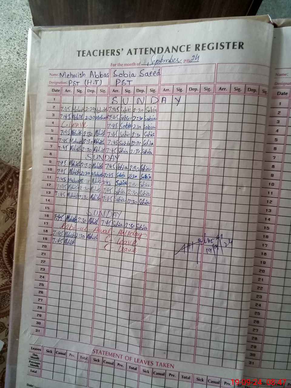 | Name: Me**** Ab**** Designation: (School Headmaster's/Headmistress's) PST Phone/Cell Number: 03**** |