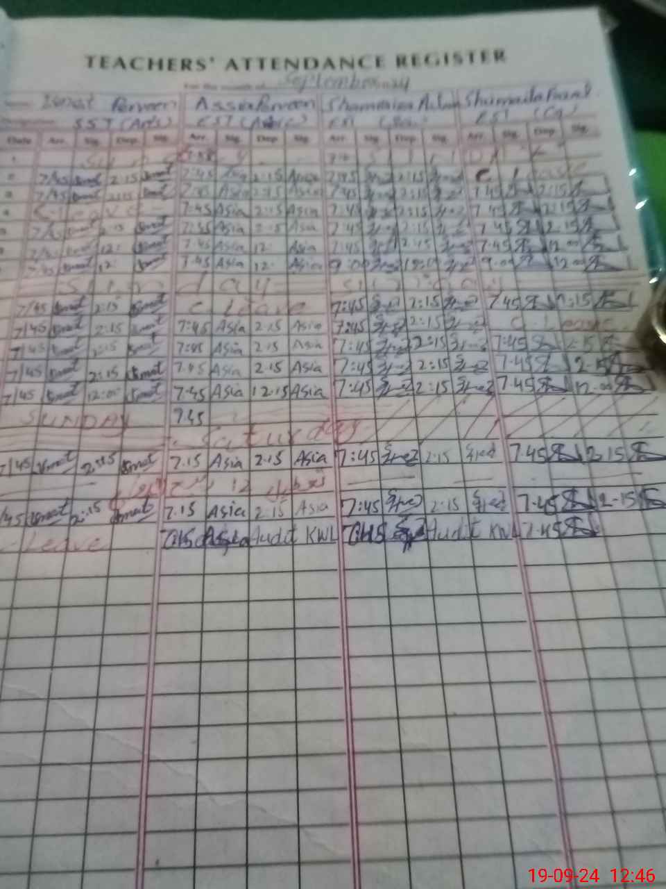 | Leave | Duty | Absent | Maternity | Medical | Ex- Pak |
