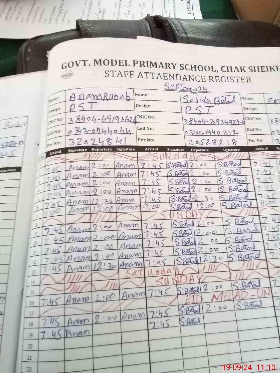 | CNIC | Full Name | Designation | R/C | Absence During Last Calender Month |