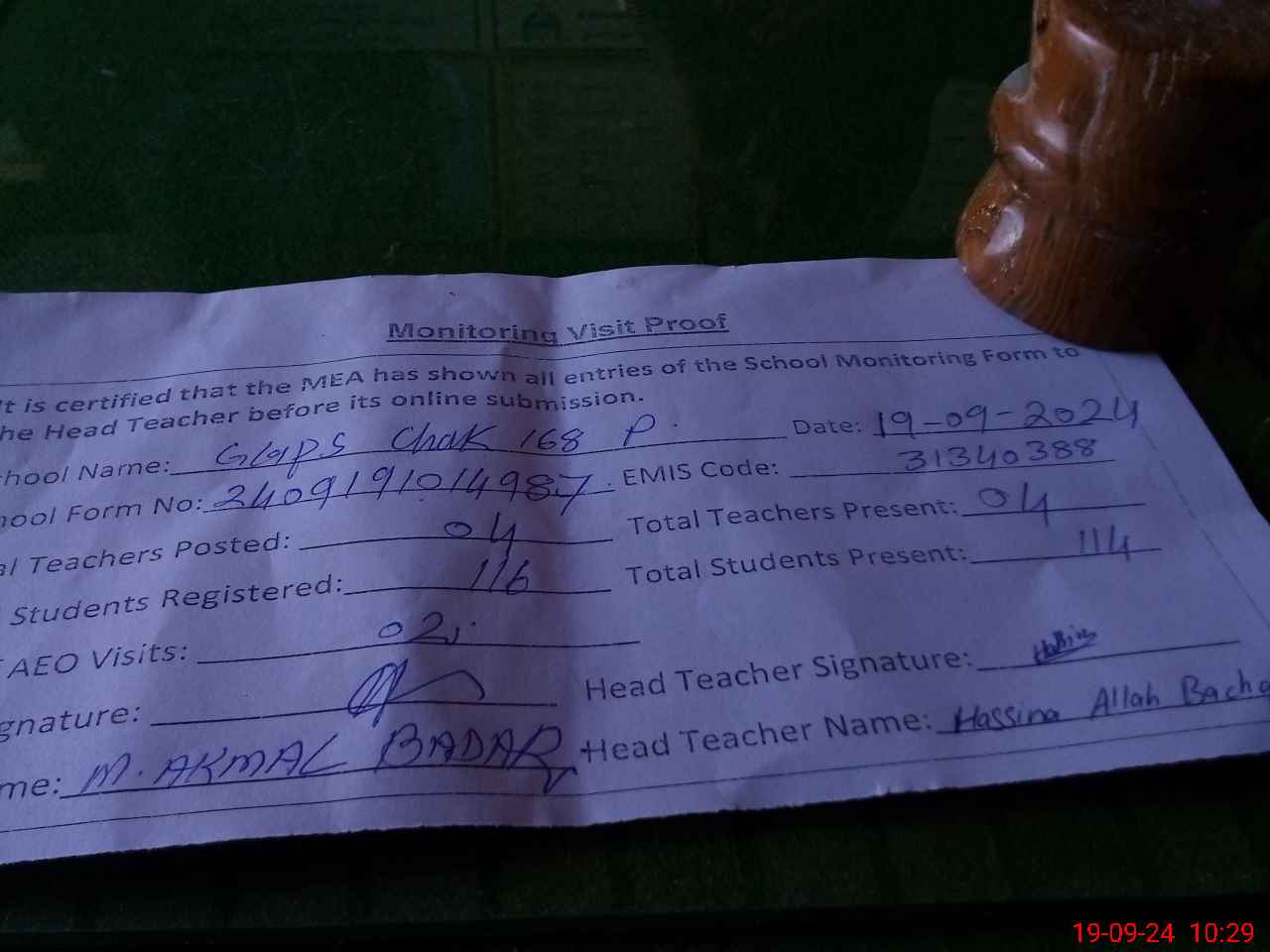 | EMIS Code: 31340388 | Name of School: GGPS CHAK 168/P | |||