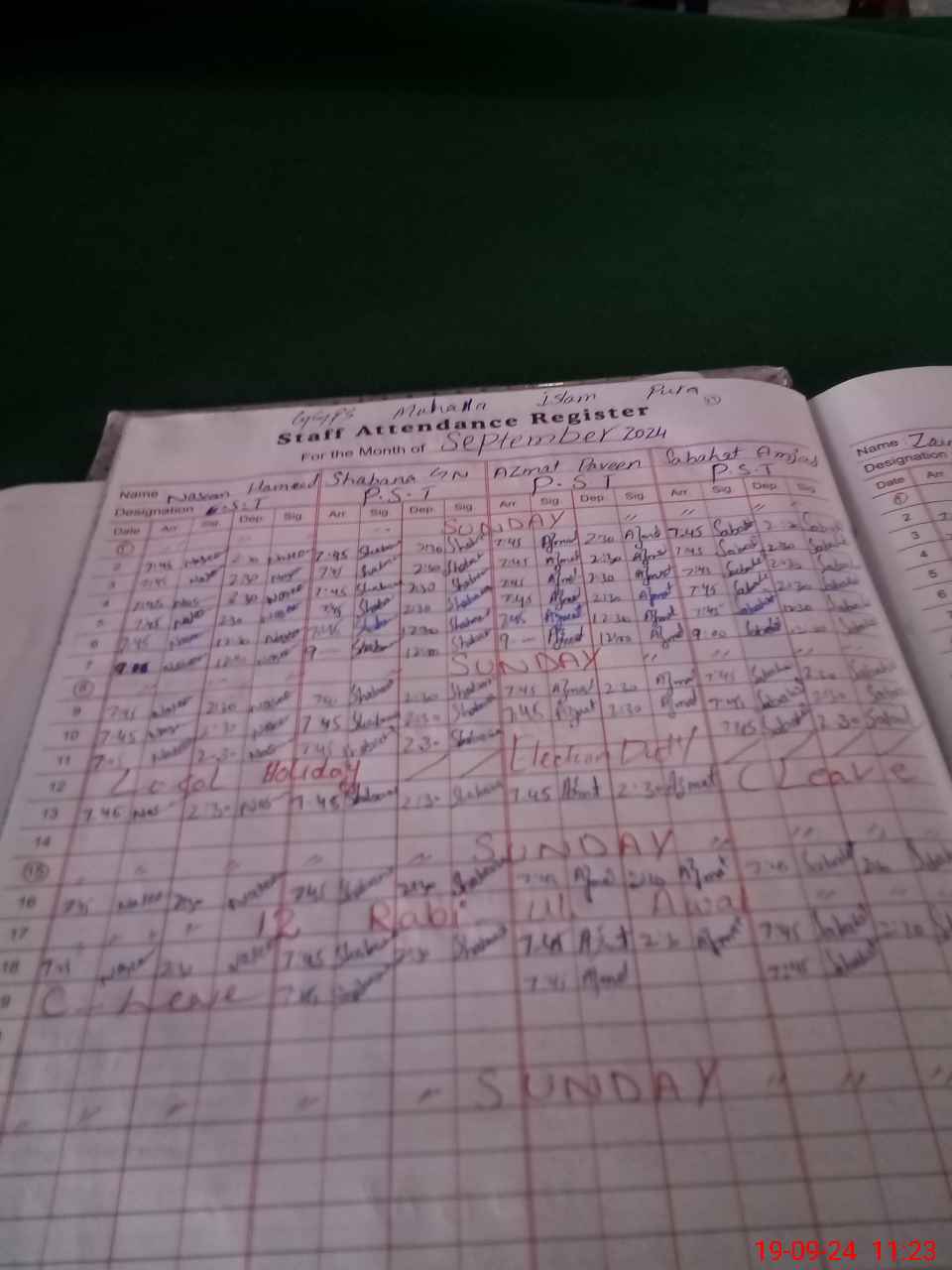 | Monitoring Date: 19-09-2024 | Start Time: 19-09-2024 11:20 AM | End Time: 19-09-2024 12:04 PM | Name of MEA: Mu**** Ak**** Ba**** | |