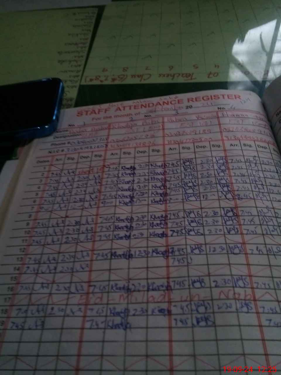 | CNIC | Full Name | Designation | R/C | Absence during last cal. month |