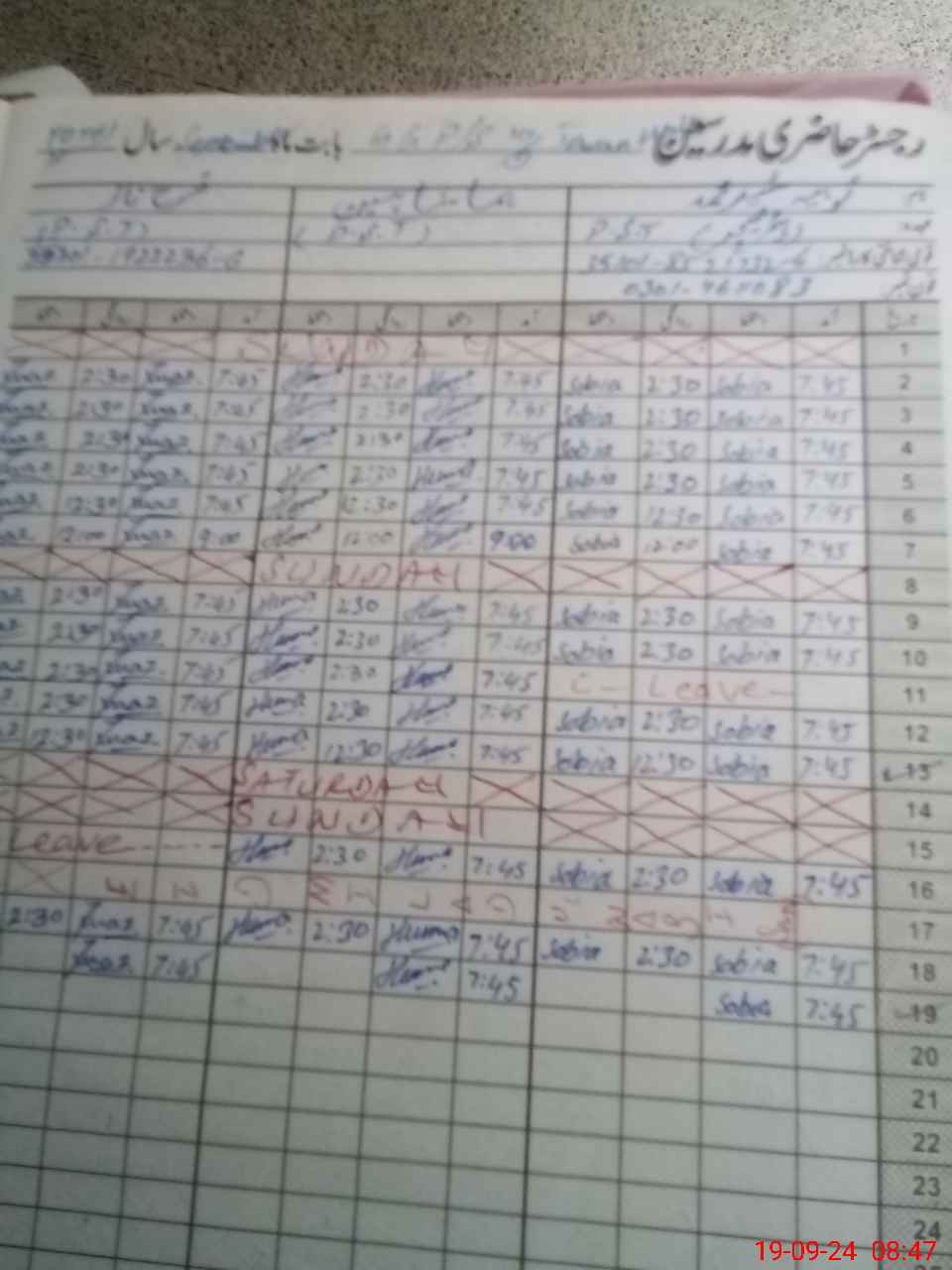 | Name: Hu**** Sh**** Designation: (School Headmaster's/Headmistress's) Pst Phone/Cell Number: 03**** |