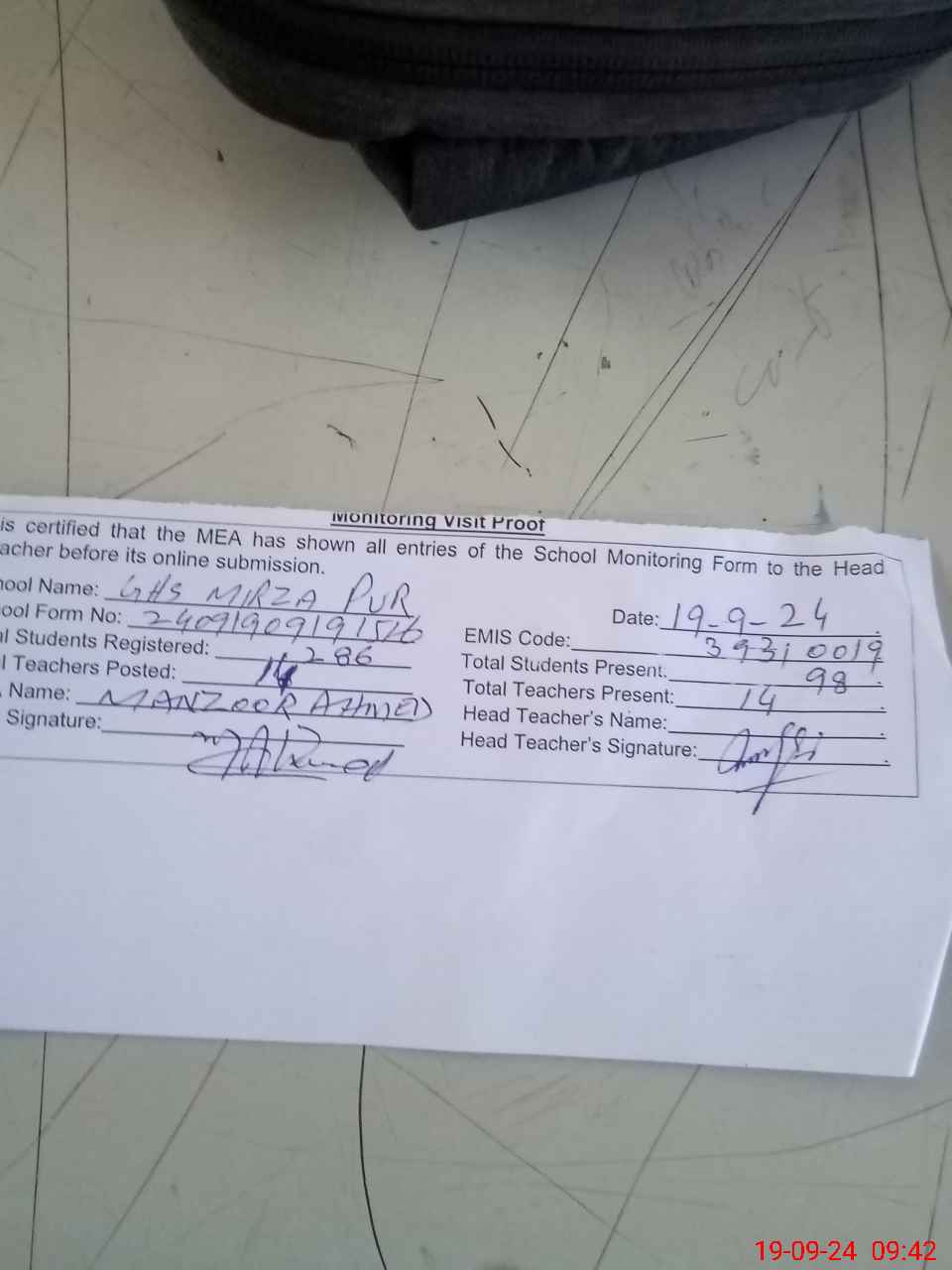 | EMIS Code: 39310019 | Name of School: GHS MIRZA PUR | |||