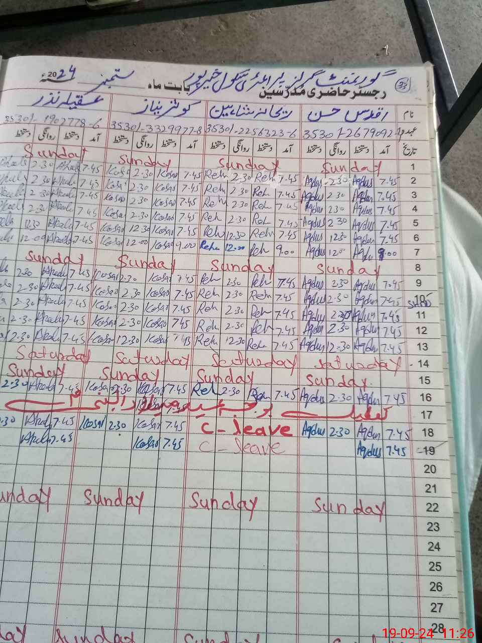 | CNIC | Full Name | Designation | R/C | Absence During Last Calender Month |