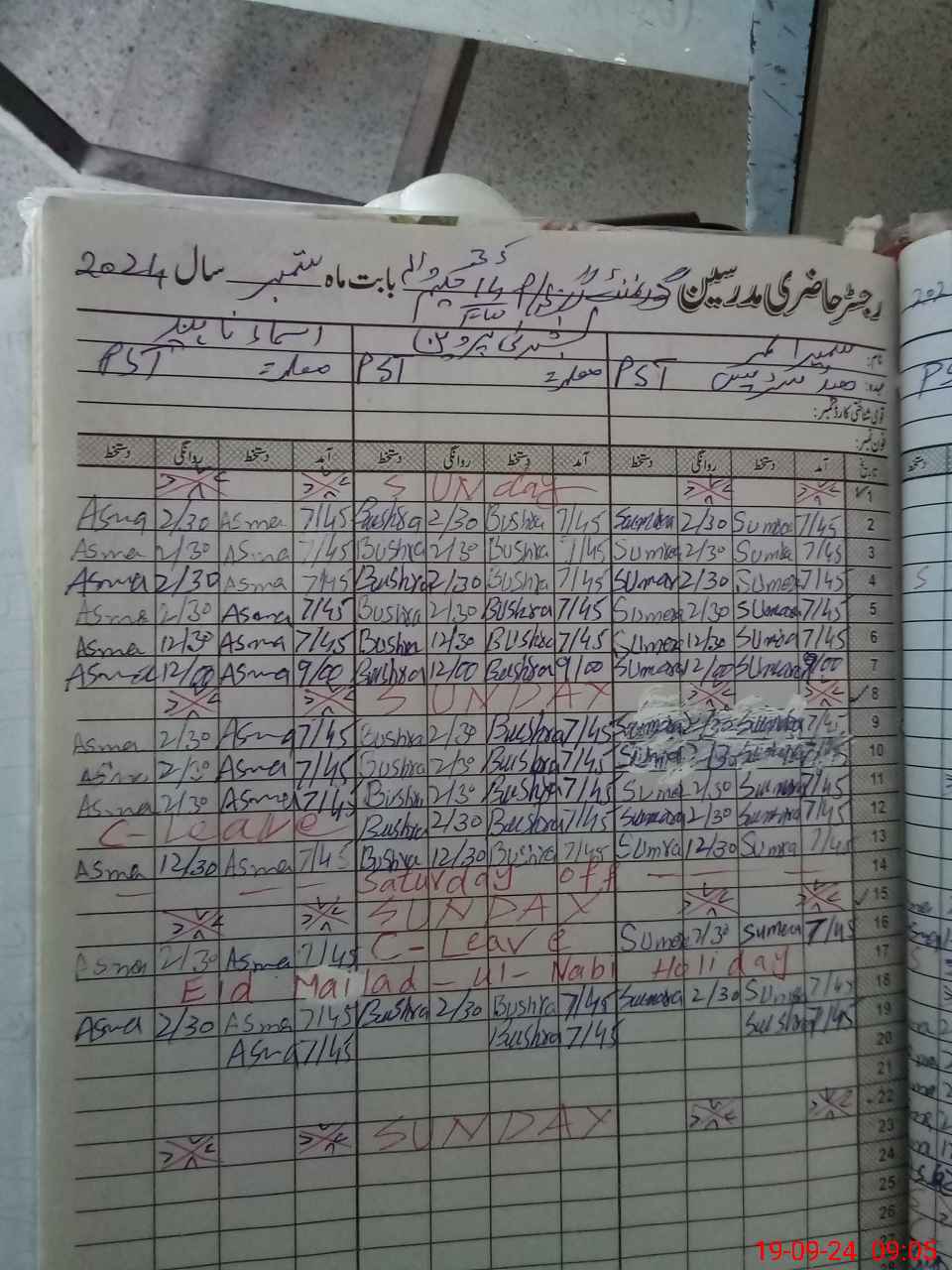 | Leave | Duty | Absent | Maternity | Medical | Ex- Pak |