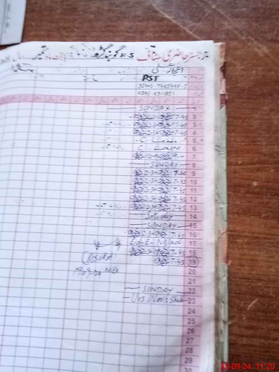 | CNIC | Full Name | Designation | R/C | Absence During Last Calender Month |