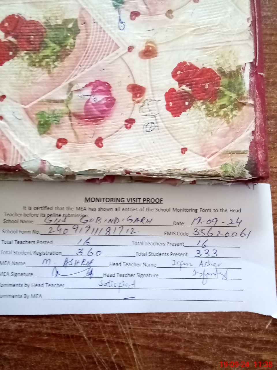 | Attendance Register | Head Teacher | MEA with School | Visit Proof |