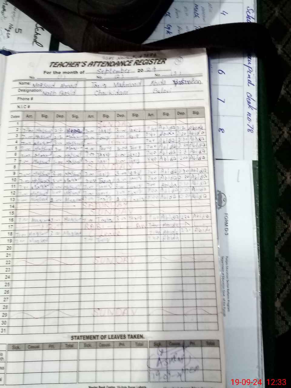 | Name: Sa**** Re**** Designation: (School Headmaster's/Headmistress's) SSE (Chem) Phone/Cell Number: 03**** |