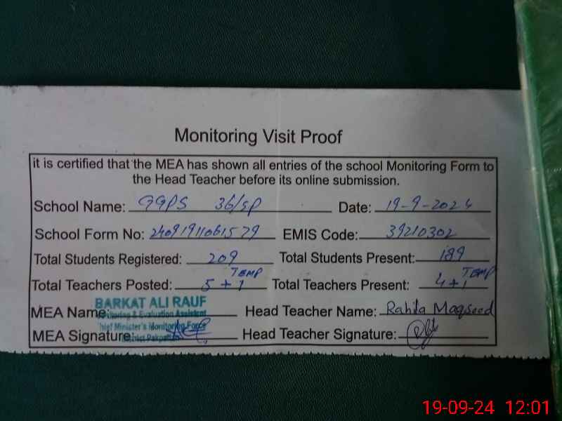 | Certified that this School was Inspected by the Undersigned MEA/DMO Today and the Information Stated Above is as Per Record. | |||||