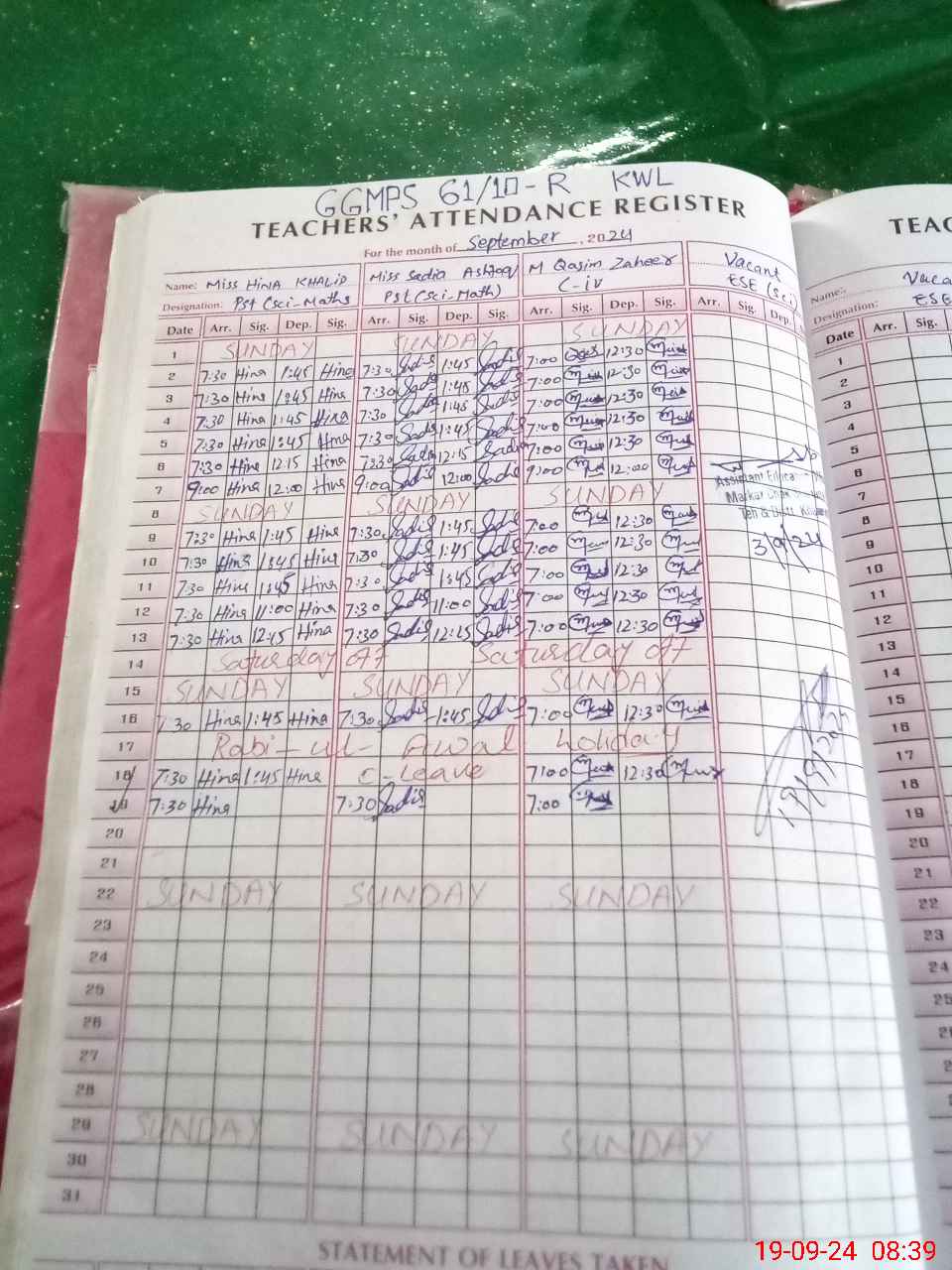 | Name: Hi**** Kh**** Designation: (School Headmaster's/Headmistress's) PST Phone/Cell Number: 03**** |