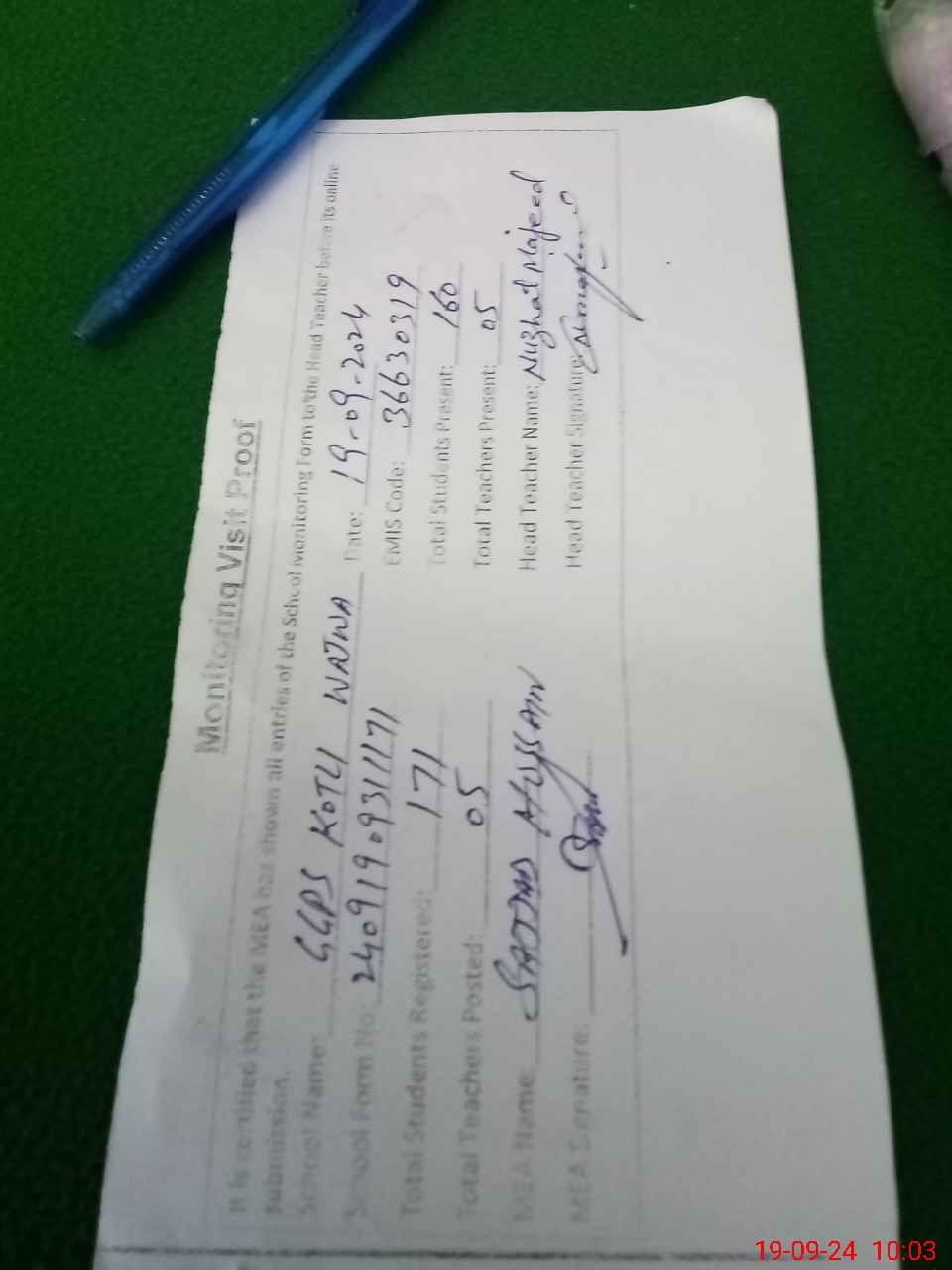| EMIS Code: 36630319 | Name of School: GGPS KOTLI WAJWA | |||
