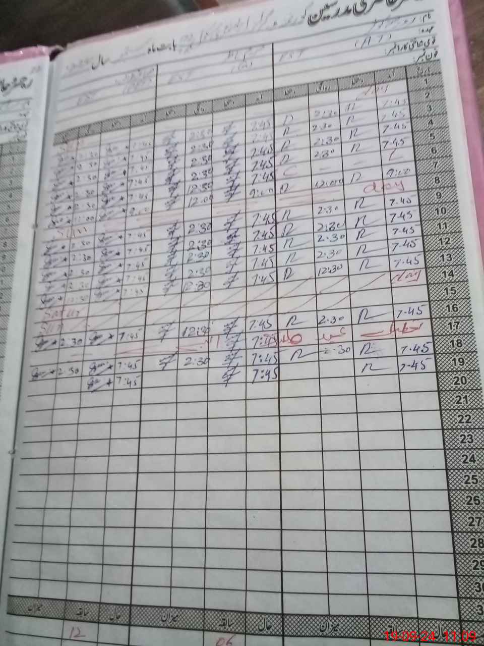 | CNIC | Full Name | Designation | R/C | Absence During Last Calender Month |