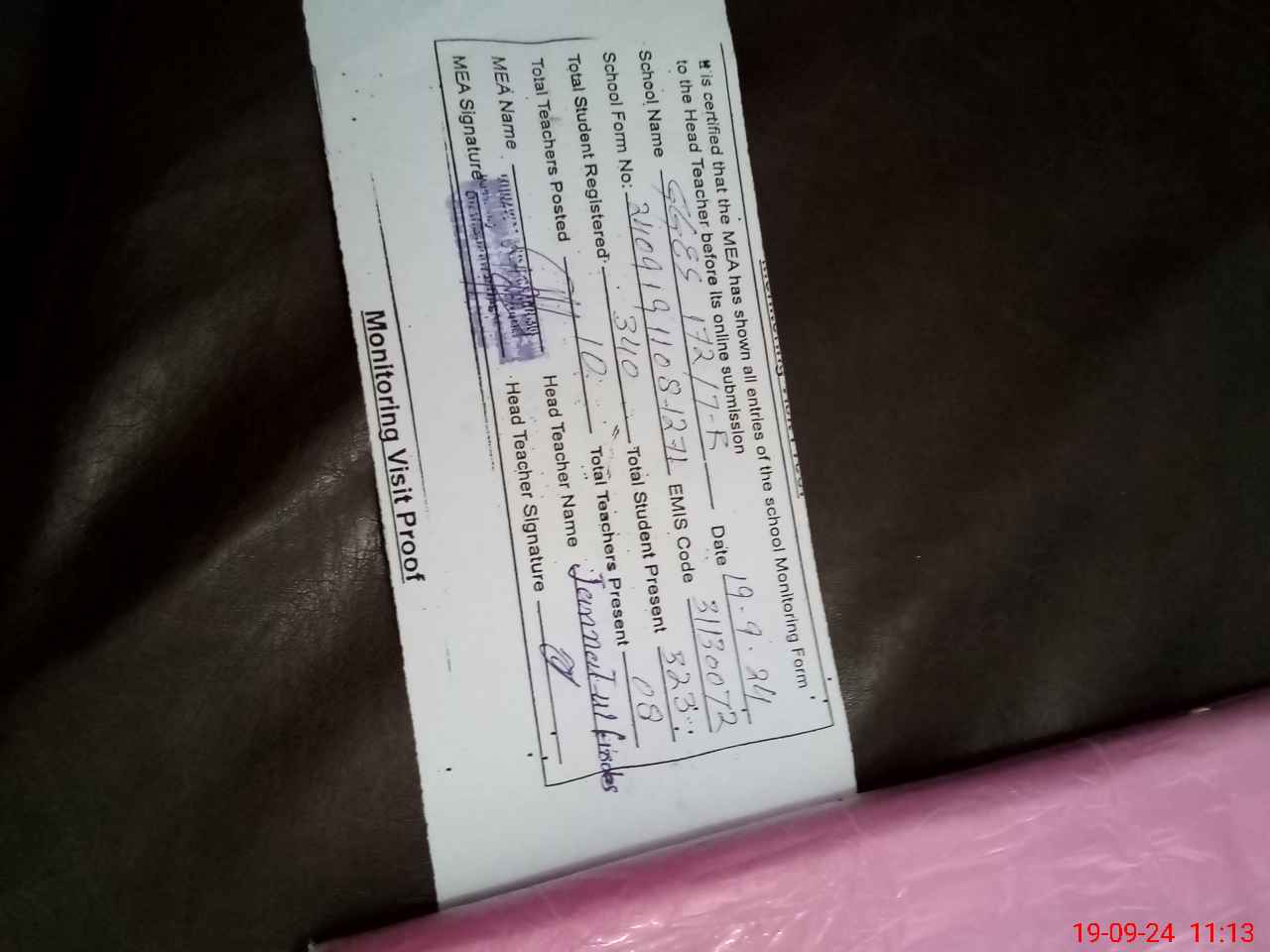 | Attendance Register | Head Teacher | MEA with School | Visit Proof |