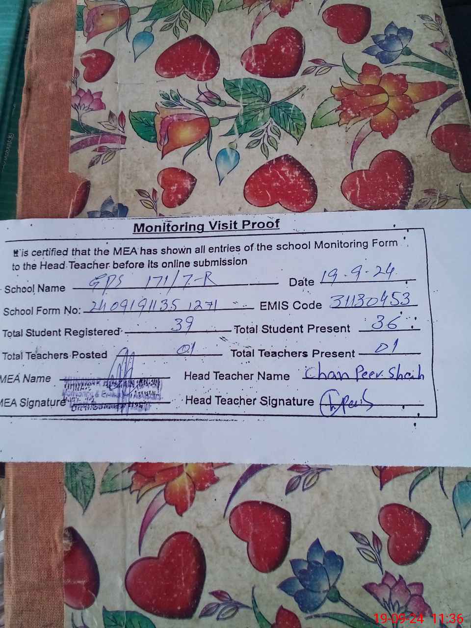 | EMIS Code: 31130453 | Name of School: GPS CHAK NO 171/7-R N | |||