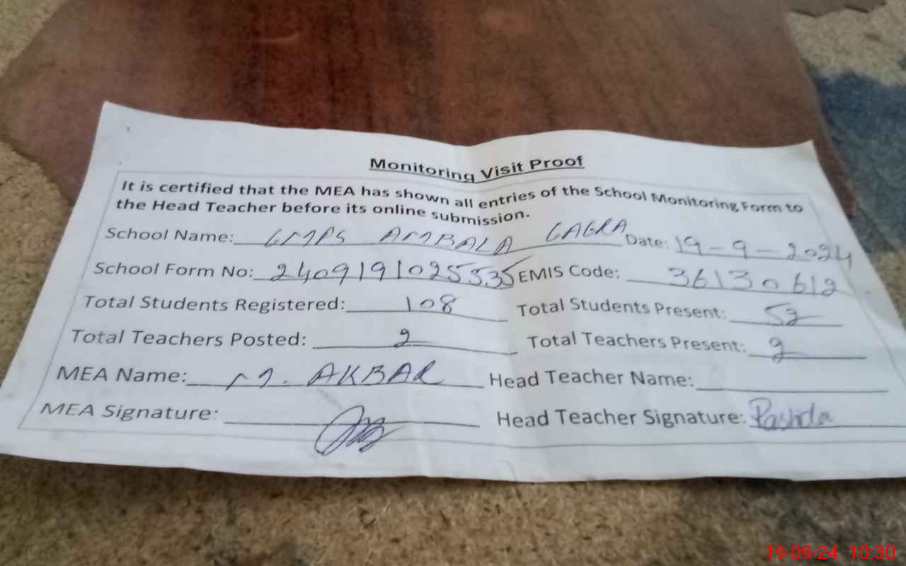 | EMIS Code: 36130612 | Name of School: GMPS AMBALA GAGRA | |||
