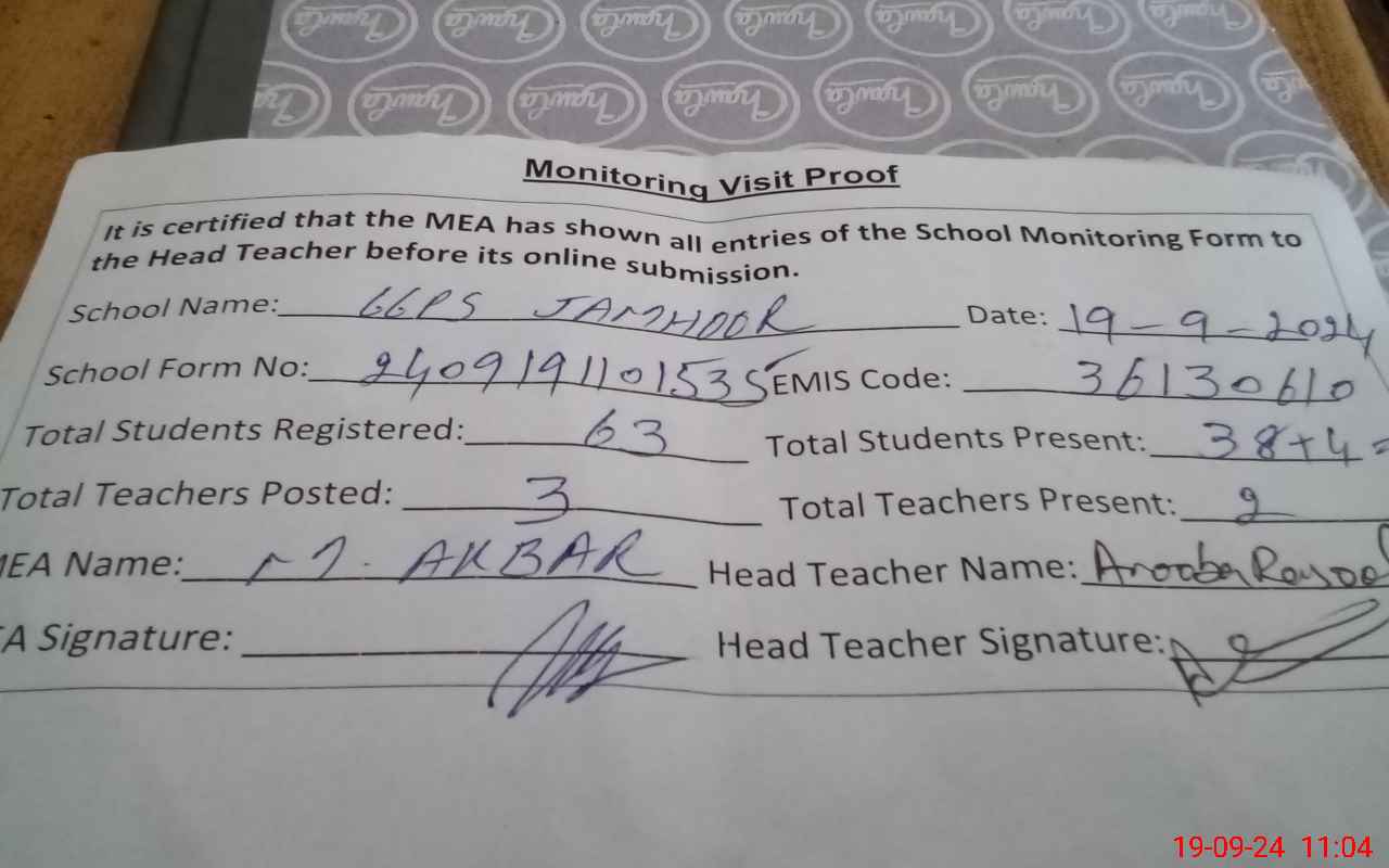 | EMIS Code: 36130610 | Name of School: GGPS JAMHOOR | |||