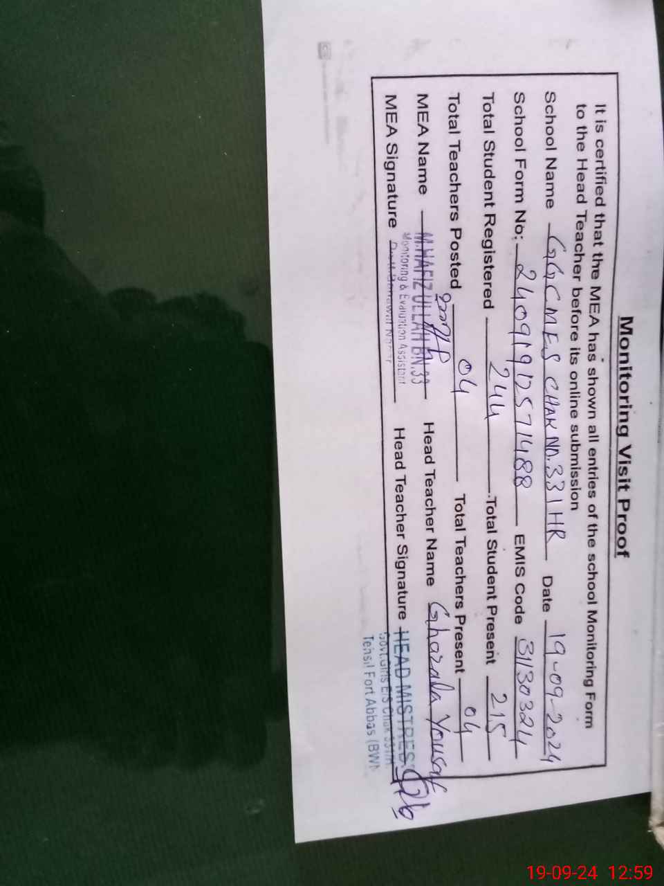 | EMIS Code: 31130324 | Name of School: GGCMES CHAK NO 331 HR | |||