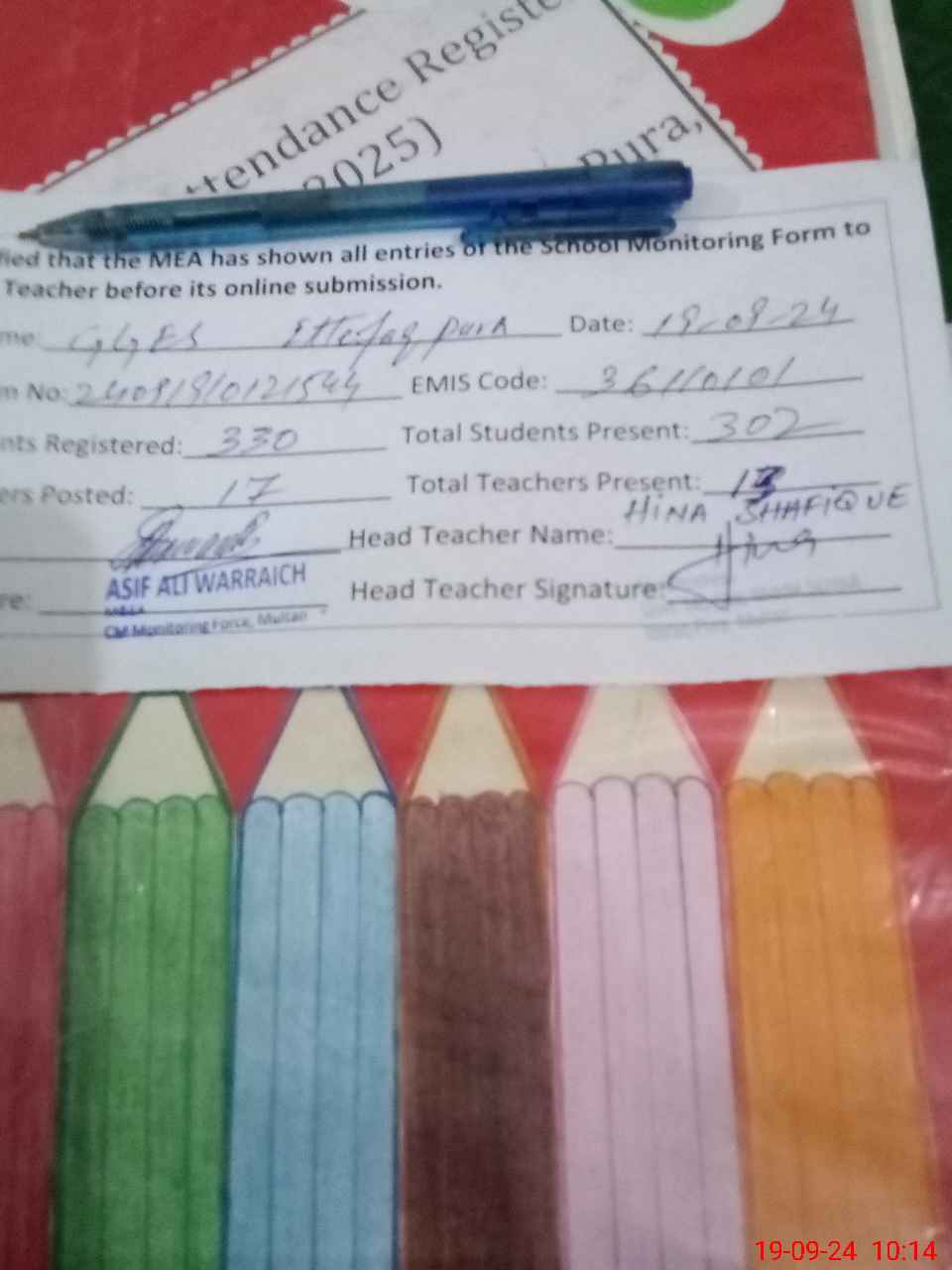 | EMIS Code: 36110101 | Name of School: GGES MC ITTEFAQ PURA MULTAN | |||