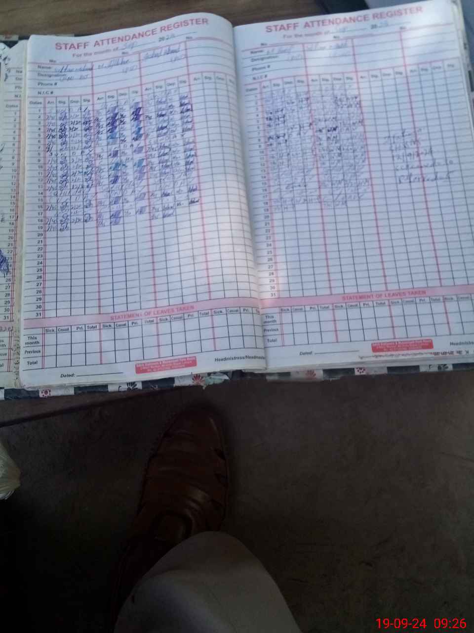 | Leave | Duty | Absent | Maternity | Medical | Ex- Pak |